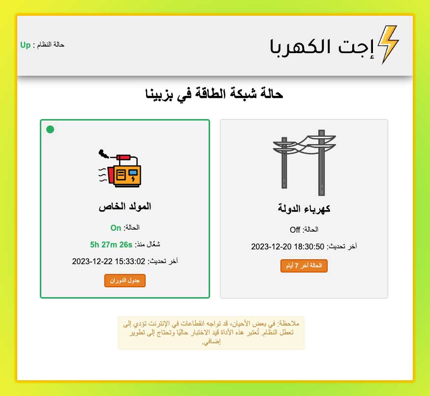 ملاحظة: في بعض الأحيان، قد تواجه انقطاعات في الإنترنت تؤدي إلى تعطل النظام. تُعتبر هذه الأداة قيد الاختبار حاليًا وتحتاج إلى تطوير إضافي.
